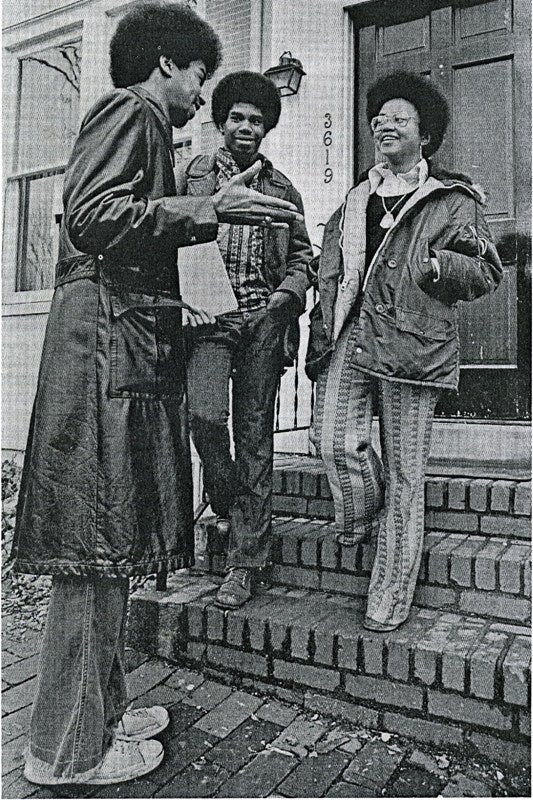 The first Black Student House was located at 3919 O Street. A yellow townhouse, it had a distinctive black, red and green front door. The House was created after a group of black students met with President Henle to discuss their needs on campus and to ask for more services.