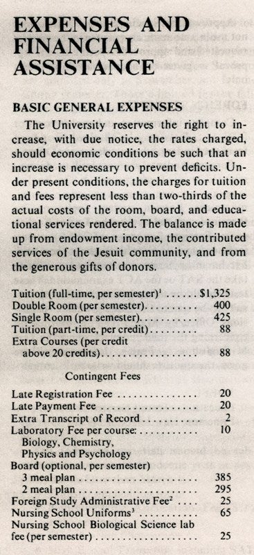 University energy consumption dropped by 18% during the winter of 1973-1974. Over the Christmas break, many buildings were closed or had their hours of operation shortened. The temperature in the dorms was maintained at 40 degrees, just enough to prevent pipes from freezing. Resident Jesuits continued to live in the dorms and were provided with portable heaters. When asked how the Jesuits fared under these conditions, Fr. Edmund Ryan, S.J., commented: We froze.
