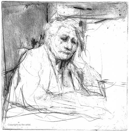 Lee Newman received his fine arts degree from American University and established the Washington Studio School in 1984. Describing himself as a figurative painter and printmaker, Newman has said: "Printmaking, specifically etching, has allowed me to pursue a sustained graphic statement while retaining the informal qualities of a sketch." This portrait depicts a patient he observed at the Washington Hebrew Home for the Aged, suffering from Alzheimer's disease. Newman had accompanied a group of high school students on voluntary community service from Holton Arms School, where he teaches. The artist was so moved by this elderly woman that he obtained permission to return and make sketches of her that he later developed into a portfolio of etchings.