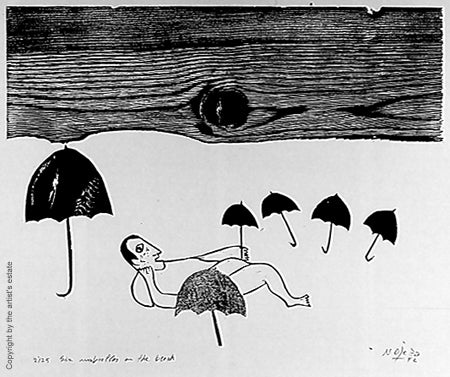 This whimsical print by woodcut master Naul Ojeda was selected from the Prints: Washington exhibition at the Corcoran Gallery of Art in 1992. As reported in the accompanying Washington Post article, the Uruguayan-born artist had lived in Washington since 1974 and was represented by the city's first and foremost contemporary print dealer, Franz Bader, who died in 1994.