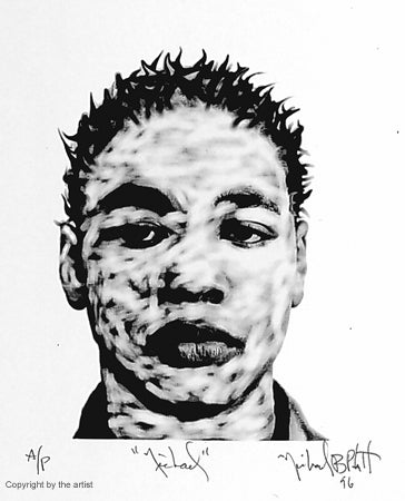 Michael Platt received his M.F.A at Howard University and has taught on the faculty of Northern Virginia Community College. During a cultural exchange trip to the Ukraine in 1995, he met the artist Natalia Mironenko, whose work involving the computer influenced him. Subsequently, Platt created this photographic-based image of his son using computer technology. He graciously served as a juror of Prints: Washington in 1997, an open, juried print exhibition of local artists sponsored by The Washington Print Club.