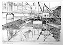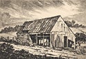 Ernest W. Boyer trained in architecture at Carnegie Institute of Technology where he met future wife Louise Rive-King Miller. Ernest Boyer held memberships in the Pittsburgh Architectural Club and the American Institute of Architects. He took up printmaking after meeting artist Edward Trumbull. Ernest Boyer never set out to be a professional printmaker; rather, he used his prints as exercises before drawing his scaled buildings. Bennett’s Barn is an example of Boyer’s interest in infrastructure and landscape.