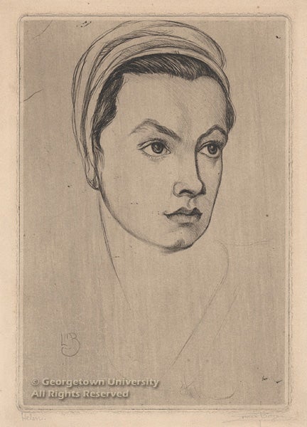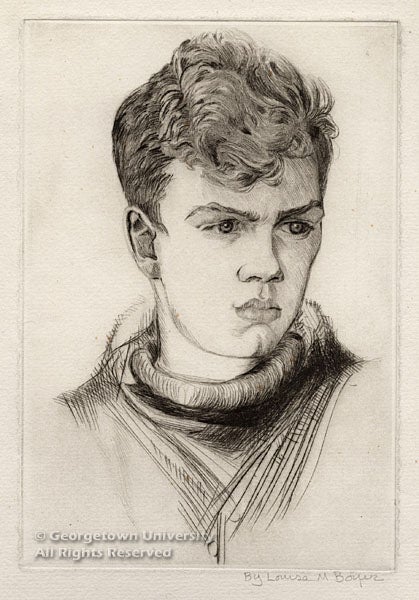 As well as scenes of Pittsburgh, Louise Boyer is noted for her eloquent portraits which capture the individual personalities of the sitter. Boyer’s training in illustration contributed to her exceptional figural draftsmanship. Her appeal to people brought portrait commissions. These prints depict Boyer’s children Taylor and Helen. The image of Taylor is one of two individuals Louise Boyer used as part of her Peer Gynt suite displayed along the north wall of the exhibition.