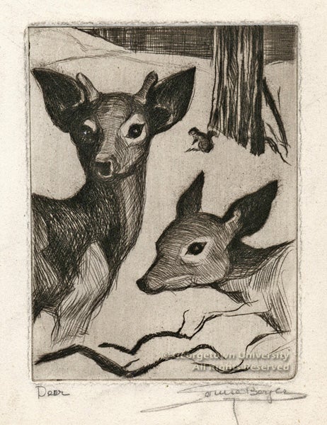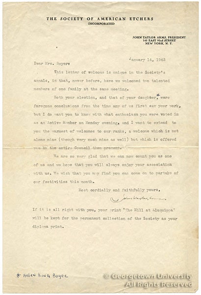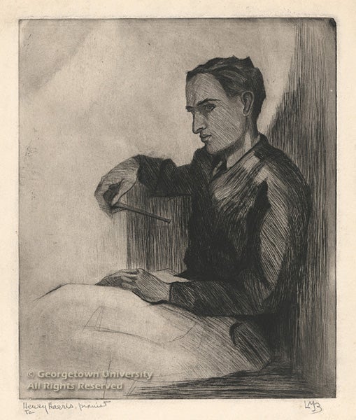 The Boyer Collection’s approximately 400 prints, drawings, and other works of art including drypoint aluminum plates, was donated in 1987 by Helen King Boyer in memory of her parents, Ernest W. Boyer and Louise Miller Boyer. The collection is further augmented by 8.50 linear feet of the family’s correspondence dating from ca. 1823-1940. The Smithsonian Institution’s National Museum of American History also holds a large collection of Boyer prints and aluminum plates.
