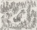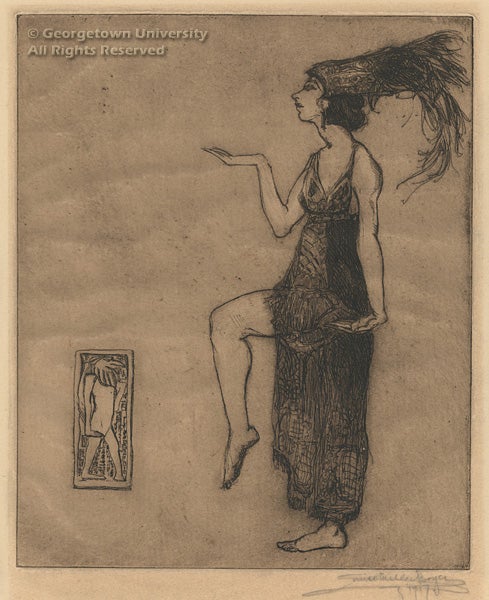 Louise Boyer created the Peer Gynt Suite as an entry to a local arts competition. This suite of prints presents several scenes from Henrik Ibsen’s Norwegian play. The centrally placed figure of Arabic princess Anitra dances sensually before the disguised Peer Gynt.