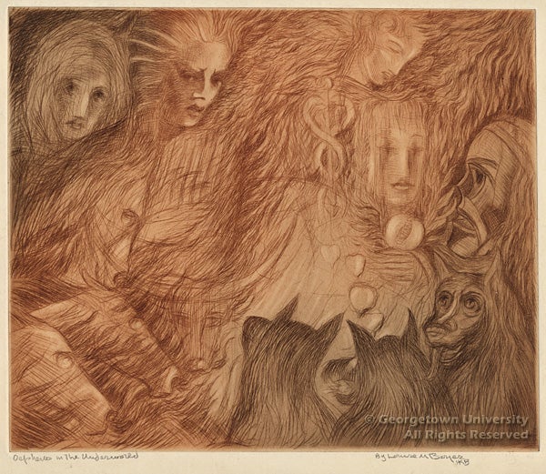 Louise Boyer’s academic training and relationship with Alcoa gave her the intellectual tools to comment on Pittsburgh’s development into an industrially urbanized city. Helen Boyer, on the other hand, mined her own life’s experiences and struggles to produce a personal narrative. Yet the Boyers share many thematic interests: the visual and performing arts, literary references, mythology and spirituality, for example. Most significant for them was their psychological connection to Pittsburgh. The Pittsburgh years of the 1930s and 40s saw the Boyers develop from amateur printers into innovative printmakers.