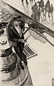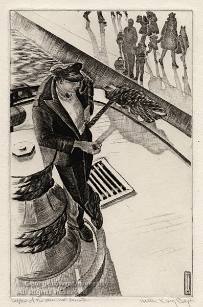 Helen Boyer also draws on leisure activity with her nautically-themed drypoint. The striking perspective allows the viewer to zoom in on the steamboat’s captain who stands casually as he awaits individuals to board a trip down one of Pittsburgh’s famous rivers.