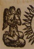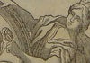 A representation of the saint resting on a mat under a simple hut on the seashore, where in the center a caravel sails surrounded by fluttering birds and fish who eye him curiously, while in the opposite, upper right corner appear three curly-headed seraphim amid the rays of a divine sun. The piece is not listed in [the catalogue] I legni incisi della Galleria Estense (Modena, 1986).