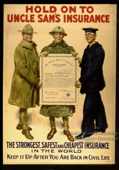 The enormous output of posters in the United States during and just after the First World War belies this country’s late entry into that conflict. Spurred by the example of the various European combatants, the creation and production of appropriate “pictorial publicity” quickly achieved a very high level of artistic involvement and industrial application. Thousands of designs were created, and most of them were printed in very large numbers. As a result, very few of these posters are scarce even today, and only a small handful might qualify as “rare.”