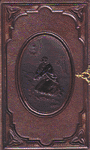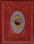 Bound by J. R. Herzog. Red cloth embossed blind and stamped in gilt. Upper cover with oval central medallion revealing onlaid "silvered" metal setting with round central painting on mother of pearl under glass. "J. R. HERZOG / BUCHBINDEREI / LEIPZIG" on ticket on rear pastedown.