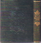 Dark brown cloth, dark blue on upper cover applied with stencil, stamped in gilt and blind. An unusually early example of the use of a second color on the binding in addition to gilt.