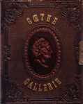 Brown leather embossed blind, stamped in gilt, upper cover with oval central medallion having composition low-relief bust of Goethe's head, in reddish brown; brass clasp. Album of photographs of paintings by Kaulbach; full-length photograph of Kaulbach, the publisher identified in the composition, at the end.