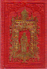 Smooth red cloth stamped pictorially in black, gray, yellow, pale blue, pink ("flesh"), gilt, and blind. The "egg" blindstamping on the upper covers is remarkable.