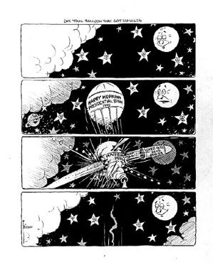 The cartoons themselves, however, are another matter. Of the 18 cartoonists represented, no less than eight were awarded one or more Pulitzer Prizes for their efforts, and a number won more than once. Their work is generally done in fairly large scale, all fully drawn at a level that most modern cartoonists would find fussy, perhaps, but challenging enough to turn out on a daily basis. The humor, when there is any, is that of “Major Hoople” and “Gasoline Alley” rather than of “Doonesbury” or “Liberty Meadows.” The cartoon subjects are adults operating in a world that isn’t very agreeable, but one where common sense and a certain degree of decency are assumed. It doesn’t matter that Harry Hopkins as “Prophet of Gloom” isn’t funny, or even that his gloom might well be justified.
