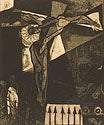 Part II features George Bellows' 1923 lithograph, "Crucifixion of Christ." It is based on a drawing he did for the publication of Arthur Conan Doyle's piece, "I Saw Him Crucified," in the September, 1922, issue of Hearst's International Magazine. It was a letter purportedly written by a Roman soldier to his uncle reporting on the facts of Christ's crucifixion as he had heard them from a centurion who was there.