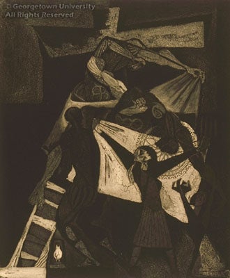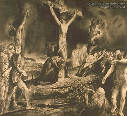 "In My Father's House ... " is an exhibition of twenty-three fine prints relating to the passion, death, and resurrection of Christ, i.e., the "Preludes to Easter." Selected from Georgetown's collections of more than 7,200 fine prints, the exhibition is divided into three parts: the first, a presentation in mid-20th century iconography of the fourteen "Stations of the Cross;" the second, a further consideration of the crucifixion itself; and third, the first word of Christ's resurrection.