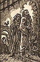 Surrounding the Bellows print are the following three woodcuts by Robert F. McGovern who teaches at The Philadelphia College of Art, and who is noted for the quality of his expressive woodcuts. Note their spiritual intensity.