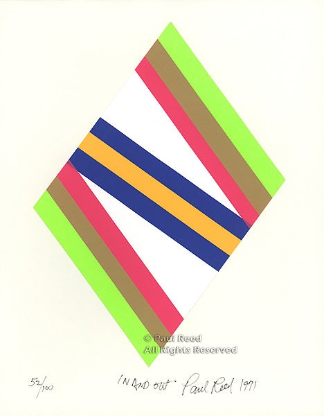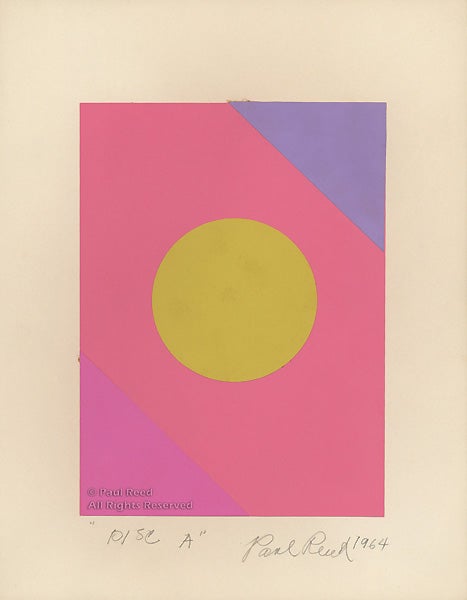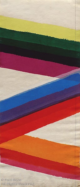 A poet of color and form in abstract art, Paul Reed (b. 1919) has lived, taught and worked in the Washington area throughout most of his career. He became nationally recognized when he exhibited with five other Washington artists, including Kenneth Noland and Morris Louis, in a traveling exhibition of the Washington Color Painters, from 1965-66. The Washington Color School, as it came to be known, adopted materials and methods from artists in New York, especially Helen Frankenthaler, who began working with newly available water-based acrylics in the 1950s. The fluid paints were poured onto fresh, unprimed canvas in a “staining” technique that resulted in luminous, vivid color and hard-edge forms. The cool, formal abstraction they introduced to Washington was perceived as a departure from the gestural, painterly brushwork of New York-based Abstract Expressionism.