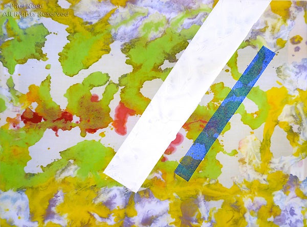 Paul Reed at the age of ninety-one continues to make art in the basement studio of his Arlington, Virginia home. The studio opens up to the light and colors of the landscape behind his house, a gentle descending slope through trees to a small tributary of the Potomac River. Reed spends as much time outdoors as weather permits. His most recent paintings, washes and drizzles of paint stained on unstretched, raw muslin, illuminate the rooms of his house. Attached to his windows, they create a vision of modernist stained glass that serves to unify and blur distinctions between interior and exterior, light and color, art and nature. As if in homage to Matisse and Rothko, light and color enliven this domestic space and present a personal microcosm of the defining nature of Paul Reed’s artistic world...