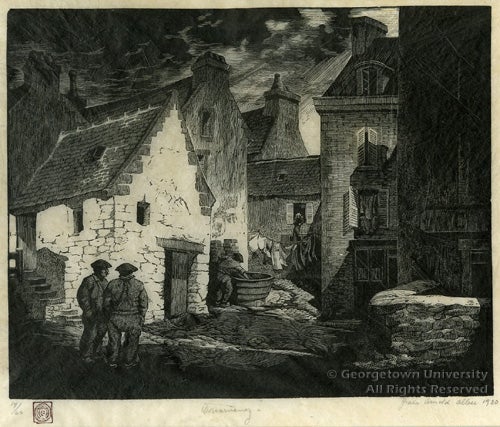 Although Grace Albee’s professional legacy as a printmaker is grounded primarily upon the images she created of rustic Pennsylvania barns and the rural countryside during the 1940s and 1950s, her works that predate this period were formative to her career and laid the foundations for the success she would achieve later in her life. Between 1915 and 1933, Albee was forced to balance her familial duties as a wife and a mother of five sons with her artistic aspirations. In an article that she co-wrote for American Artist magazine with another printmaker, Ernest Watson (1884–1969), Albee admitted the difficulties of managing career with family during these early years: