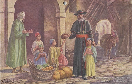 The French Charles-Martial-Allemand Lavigerie (1825 - 1892) was Archbishop of Algiers, leading efforts to convert the Moslem Arabs, and to abolish slavery in Africa. From the March 1948 Calendar: "His Eminence, Charles Cardinal Lavigerie, after successful clerical teaching in France, was appointed Archbishop of Algiers in 1867, and began his apostolate among the Moslems of northern Africa. He founded the White Fathers and the Missionary Sisters of Our Lady of Africa, who continue his work today." (Author unknown.)