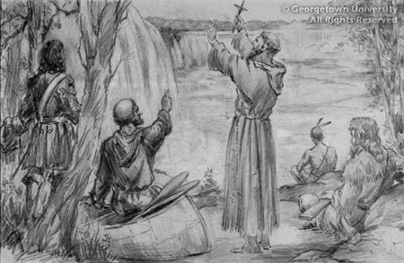 Father Louis Hennepin's (ca. 1640 - ca. 1701) expedition saw Niagara Falls in 1678.
