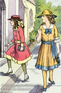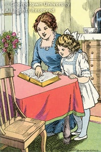 J. Watson Davis had a prolific career, from the late nineteenth to the mid-twentieth centuries, as a book illustrator. Technical advances in photographic and lithographic color image reproduction during that time led to a growth in the use of such illustrations. Davis' commissions included Zane Grey novels, and editions of Sherlock Holmes tales and Bluebeard. Georgetown University is pleased to exhibit two editions of children's books, lent by the artist's granddaughter, that help place his religious illustrations in the context of his career.