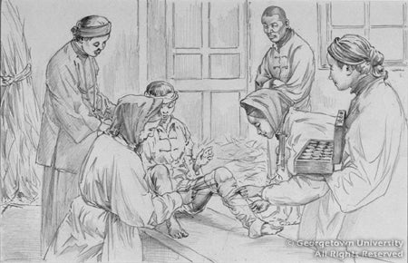 Drawings for the 1949 calendar depict contemporary missionary activity, including liturgical, educational, and humanitarianætwo (one shown) are of medical relief during China's catastrophic civil war of the late 1940s.