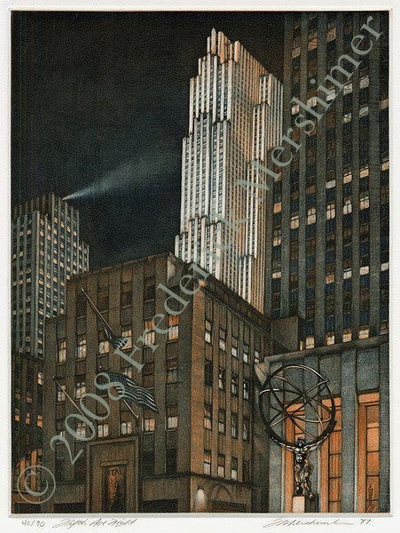 Always interested in the problems of rendering light, naturalism and illusion, Mershimer has chosen New York architecture as the dominant theme for many of his prints. Inspired by the city’s landmarks and its other structures of historic significance, his images are characterized by the qualities of light and space.