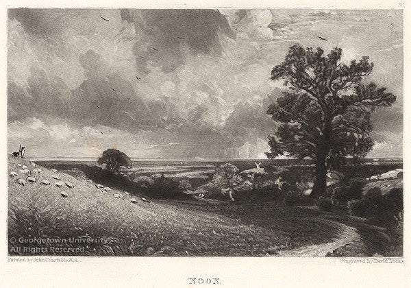 The close working relationship of British landscape painter John Constable and his younger colleague David Lucas is documented through their surviving correspondence, hundreds of annotated working proofs, and the many mezzotint impressions of Constable’s views made by Lucas, first published in five parts between 1830 and 1832. Lucas had recently completed his apprenticeship with the engraver S.W. Reynolds, and had begun issuing his own mezzotints in London when he came to the attention of Constable, who was seeking assistance with a proposed publication of his pastoral landscapes. These were no doubt inspired by the success of J.M.W. Turner’s ambitious mezzotinted landscape publication known as the Liber Studiorum (1807 – 1819).