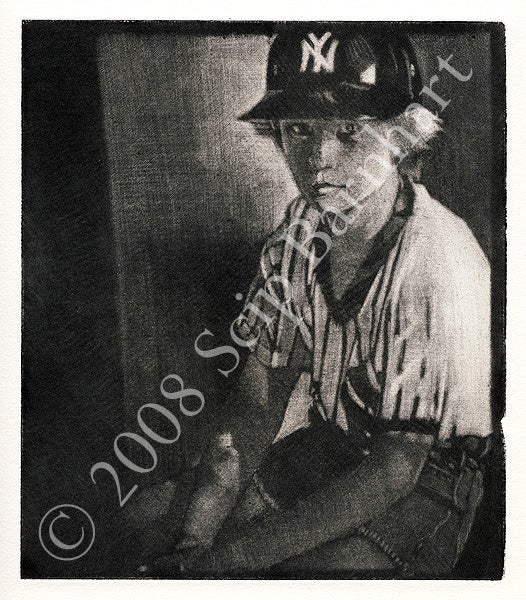 For this exhibition, Barnhart graciously loaned his mezzotint tools and this portrait of his son, Ryan, his only endeavor in the medium of mezzotint from the mid-1980s. The genesis of the print is described in Barnhart’s statement below: