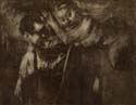 This highly detailed mezzotint, a technical tour de force from the British Pre-Raphaelite era, depicts a frightened-looking Ophelia. Around her wrist are the herbs she was picking by the water’s edge prior to the plunge that ended her life. Her ermine-trimmed gown, suggestive of rich silk brocade, indicates her elevated status as a Danish noblewoman. The character of Ophelia—her victimization by Hamlet and her subsequent decline into madness—was a popular theme of Pre-Raphaelite artists, whose subjects were frequently drawn from the Bible, the plays of Shakespeare or British Romantic poetry.