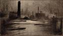 Joseph Pennell was born and raised in Philadelphia, Pennsylvania by Quaker parents who encouraged his artistic leanings from a young age. In 1876 he briefly clerked for the Philadelphia and Reading Coal Company while attending evening classes at the Pennsylvania School of Industrial Art, two experiences that influenced his lifelong interest in industrial subjects. In 1880 he produced his first etching, and a year later received his first magazine commissions from Harper’s and Scribner’s. In 1885 he moved with his young bride Elizabeth Robbins to Europe, where he remained for the next 32 years. At the beginning of World War I, Pennell traveled in Europe with the intention of illustrating the industrial nature of the war. However, the emotional strain was too great and he returned with his wife to the United States, settling permanently in Brooklyn, New York in 1917.