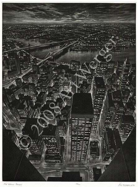 A native of Grand Rapids, Michigan, Reynold Weidenaar created over 200 prints throughout his career. His sensitivity and skill in rendering smoky, atmospheric effects through the technique of mezzotint contributed to the revival of interest in the medium in America. Important awards in the 1940s from the Guggenheim and the Louis Comfort Tiffany foundations enabled Weidenaar to travel. He spent considerable time in Mexico, where he created some of his most important works.