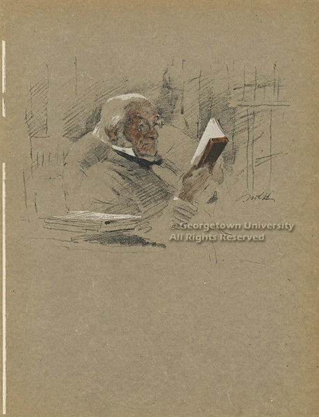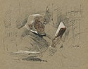 Four-time British Prime Minister William Gladstone, famously active and vigorous, is shown here in what must have been a rare moment of quiet study in the year after his retirement at age 84.