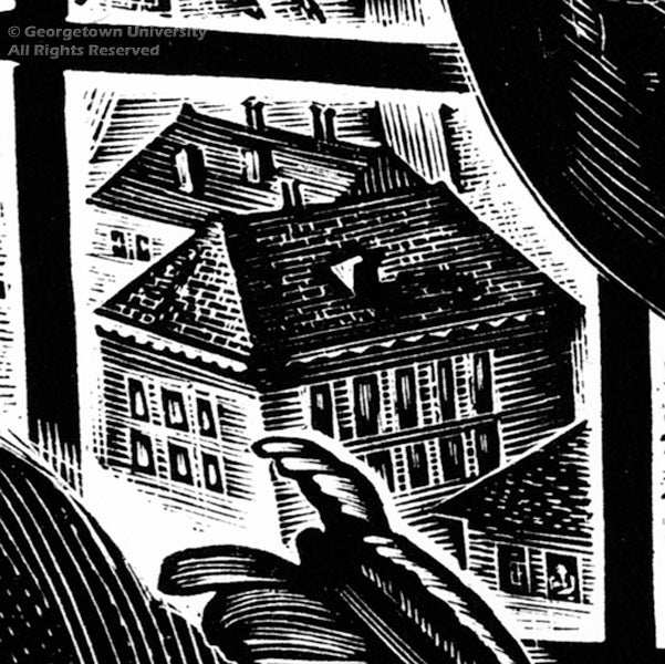 Horter created this image for publication in The Colophon: A Book Collector’s Quarterly. At the time, The Colophon was still printed with high-quality original art prints alongside the text; soon afterwards, however, the financial pressures of the Depression forced a reduction in quality.