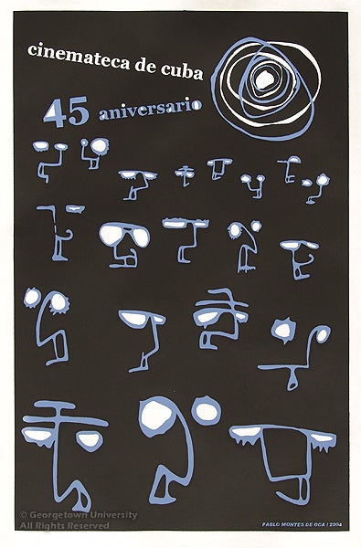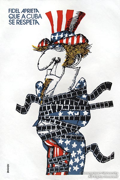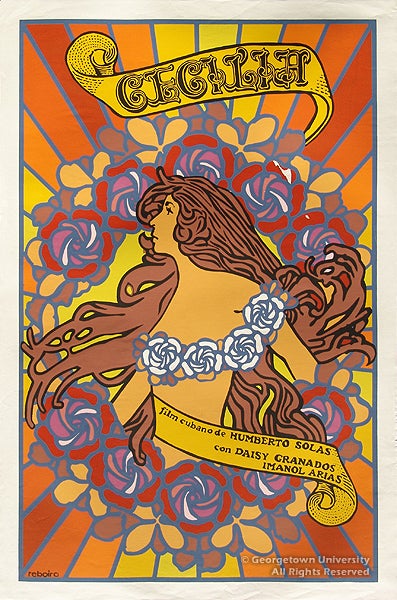 The exhibition at Lauinger highlights approximately 25 from the Library’s collection of 322 Cuban film posters recently purchased from German poster collector Thomas Hill. Our aim is to explore the Cuban cinematic experience and corresponding silkscreen poster in order to present the artistic range of this ubiquitous medium in the production of Cuban visual culture after the revolution.