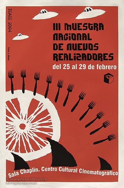 The exhibition Screening Prints: Fifty Years of Cuban Cinema Posters, 1959 – 2009 marks the 50th anniversary of the Cuban Revolution and the creation of the Cuban Institute of Art and Film Industry (Instituto Cubano de Arte e Industria Cinematográficos), or ICAIC. Founded in March, 1959 (just 83 days following the revolution) the ICAIC was one of the first institutions implemented by the new Cuban government. One of the main instruments of the Institute, the Cuban film poster was a means of promoting the work of native artists who immortalized historic films and figures in their bold and colorful designs.