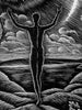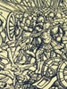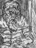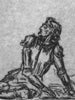 One of Italy's leading twentieth-century cartoonists, Mino Maccari was raised in Siena, where he obtained a doctorate in law at the age of twenty-one. Although he had no formal art training, Maccari became one of the primary illustrators of the popular magazine Il Selvaggio, which reflected contemporary life in Italy between the two world wars. He also produced a number of fine prints, such as this stark woodcut interpretation of Hamlet as a troubled modern youth, in a graphic style reminiscent of German Expressionism. The tormented anti-hero brandishes a gun while a skeleton - possibly his father's ghost - grasps Hamlet's leg menacingly from under a table.