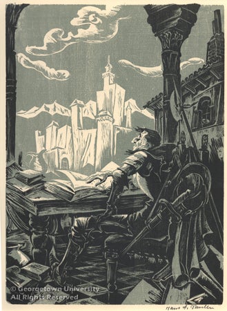 Lauinger Library has in its collection nearly four hundred items related to Don Quixote, including translations of the novel; scholarly studies; video recordings of dramatic productions, the musical, and lectures; sound recordings of music inspired by the great novel; and the works of art and rare books in this exhibition.