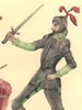 This frontispiece portrait by French engraver Adolpe Lalauze is based on various earlier prototypes, all derived from the presumed portrait of Cervantes attributed to Juan de Jáuregui (c. 1570 - 1640) in the Real Academia Española (Spanish Royal Academy) in Madrid. Lalauze, winner of several medals at the annual Paris Salon exhibitions and Chevalier of France's Legion of Honor, engraved thirty-seven plates for this four-volume edition published in Edinburgh in 1879.