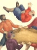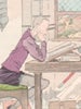 For his popular 1939 text Woodcuts & Wood Engravings: How I Make Them (New York: Pynson Printers, 1939), Mueller used one of his illustrations being prepared for the 1941 Don Quixote to demonstrate how the midtone (color) plate and the black plate (for shadows and details) combine against the white paper to produce images well-defined in volume and depth.