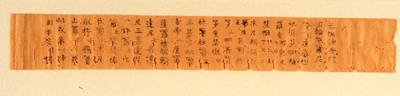 Transliteration into Chinese characters (by Mi T'o-shan, 705 A.D.) of a "charm" from the Sanskrit text Vimalasuddhaprabhasamahadharanisutra. One of four such charms printed on paper made from hemp at the order of the Japanese Empress Shotoku. With its original lathe-turned, whitened wood pagoda. Purchase, 1985, with the rare book collection of the University of Detroit.