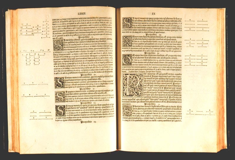 Preclarissimus liber elementorum Euclidis perspicacissimi: in artem Geometrie incipit quã foelicissime. First edition of Euclid's Elements, not published in the original Greek until 1533. With ownership inscriptions of Philippus Romualdus Bissonius, 1742. Rebound in recent full calf. Acquired from an undetermined source prior to 1868.