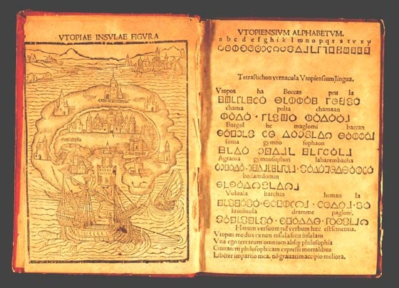 Libellus vere aureus nec minus salutaris quam festivus de optimo reip. statu, deq: nova Insula Utopia. First edition of More's Utopia, one of only eight known complete copies. Rebound in later French (?) quarter red morocco and paper boards. Purchase, 1892, with the library of John Gilmary Shea.
