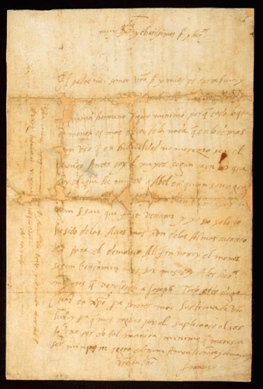 Autograph letter, signed. Oñate, 19 May [1551] one page, in Spanish, mounted. An impassioned declaration of the writer's sinfulness and humility addressed to a group of fellow Jesuits in Portugal, saying in part "I have been like Esau, a mighty hunter, and chased not only birds, but souls, acting as a beater for the Devil." Gift of Mary Benjamin in honor of Father Francis X. Talbot, S.J., 1947.