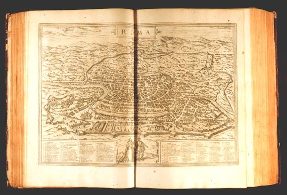 Civitates orbis terrarum. Six volumes bound in two. First edition of the first great city atlas, this copy complete with all the plates in uncolored state. Bound in full calf, each volume bearing the gilt arms of French diplomat Gaspard Coignet de la Thuilerie, comte de Courson (1596/97-1653). Gift of an anonymous donor, 1976.
