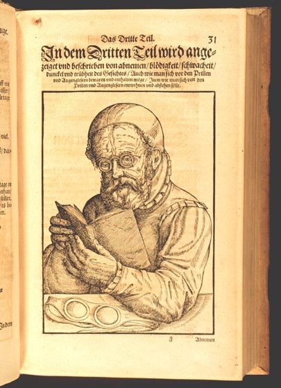 Das ist / Augendienst. First edition of the seminal work in ophthalmology. Bound in contemporary blindstamped pigskin over wooden boards, upper cover stamped with the date "1584" (clasps missing). Gift of Mrs. G. William Schlindwein, prior to1970.