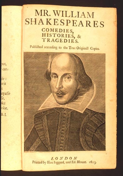 Mr. William Shakespeares Comedies, Histories, & Tragedies. Published according to the True Originall Copies. "First Folio" edition, first two leaves and final leaf in type facsimile, portrait on title leaf inset from a copy of the Fourth Folio; includes the first appearances in print of a number of Shakespeare's plays. Bound in full 19th century "pale Russia" (boards detached). Bookplate of Lucy Wharton Drexel (ca. 1888). Purchase, 1964.
