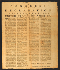 U.S. Declaration of Independence. In Congress, July 4, 1776. A Declaration by the Representatives of the United States of America, in General Congress Assembled. One of the earliest regional printings of the Declaration, this the "unofficial" (and probably earlier) of two Salem printings, and the only one presented in four-column format. One of very few known copies. Acquired by the University Archives from an undetermined source prior to 1970.